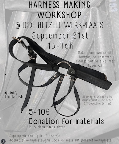 Want a harness that’s functional and hot 🥵 AND made from bike inner tubes? Then sign up for a harness making workshop at the DHZ on September 21st!