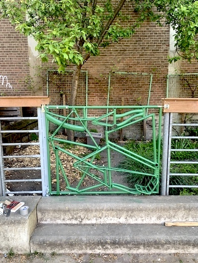 On a beautiful weekend in late march we came together for a fence-building-skill sharing workshop. Members of the collective as well as friends joined to make use of the resource available in abundance in this city: The broken Bike.