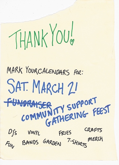 We still ask you to mark your calendars for Saturday March 21 ! We were planning a crowdfunding party, but since y’all beat us to that we are still going to do it anyway. See this as a community support and come together moment in which we can all thank each other for showing up in all the ways we do!